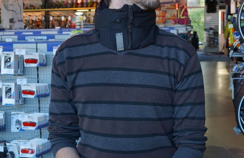 Er sieht aus wie ein Schal und fällt auch nicht viel mehr auf. Er wird um den Hals gelegt und funktioniert wie eine art Halskrause. Der Unterschied zur Halskrause ist jedoch, beim unsichtbaren Fahrradhelm, dem Hövding Airbag Helm hat man noch ordentlich Bewegungsfreiheit. Die normalen Nackenbewegungen die man beim Fahrradfahren macht, sind nicht beeinträchtigt. Hier kommt es aber ganz auf die richtige Fahrradhelm Größe an. Ich hatte bei dem Test einmal ein Modell in der Größe S und M an. Das S Modell war recht eng, hiermit konnte ich mich nicht frei bewegen.