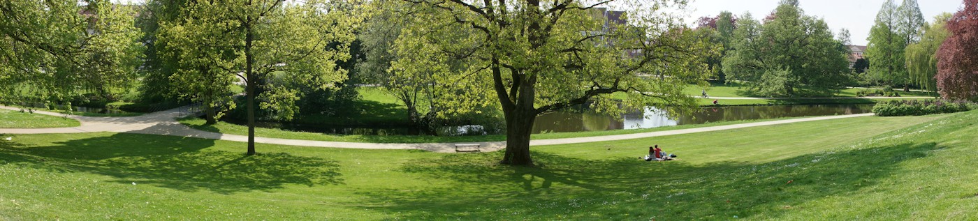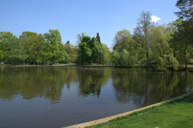 Unser erstes Ziel sollten die Plätze und Straßen der Stadtführung sein, die wir noch einmal mit dem Fahrrad abfahren wollten. Der Weg führte uns durch den Schlosspark zum Französischen Garten und schließlich bis zum Stadtpark. Angefangen hat unsere Tour gegenüber dem Fahrradverleih Jacobi mit der Durchquerung der Trifft-Anlage.