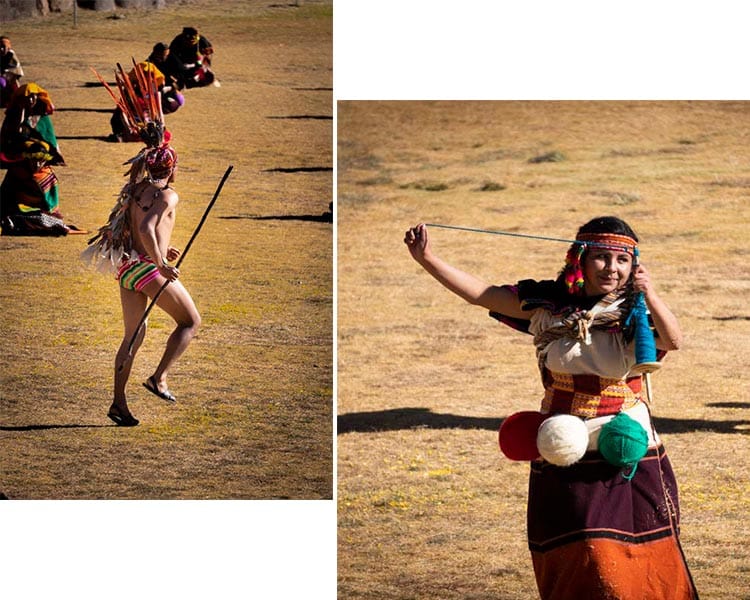 In Inca times, Inti Raymi was performed on the main plaza in Cusco. Nowadays, the reenactment takes place in three parts, beginning at Qoricancha and ending at Sacsayhuaman, the magnificent Inca stone ruin that overlooks the city. In the olden days, hundreds of llamas were sacrificed as an offering to Inti, to bring back the sun during the shortest days of the year, when he was thought to be in hiding. The sacrifices were meant to ensure a flourishing crop and abundance for the coming year, as well as the sun’s return. The innards of the llamas were examined to prophesy on the fortune, good or bad, that lay ahead. Coca-leaf prophesy, prayer, singing, and dancing were all featured in the ritual.