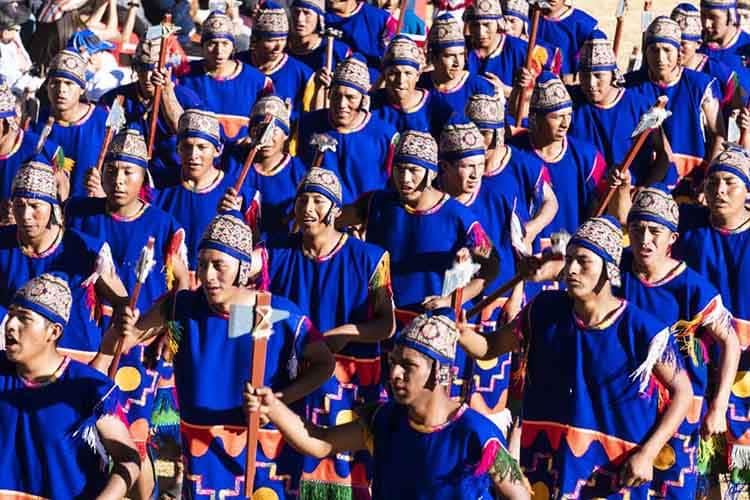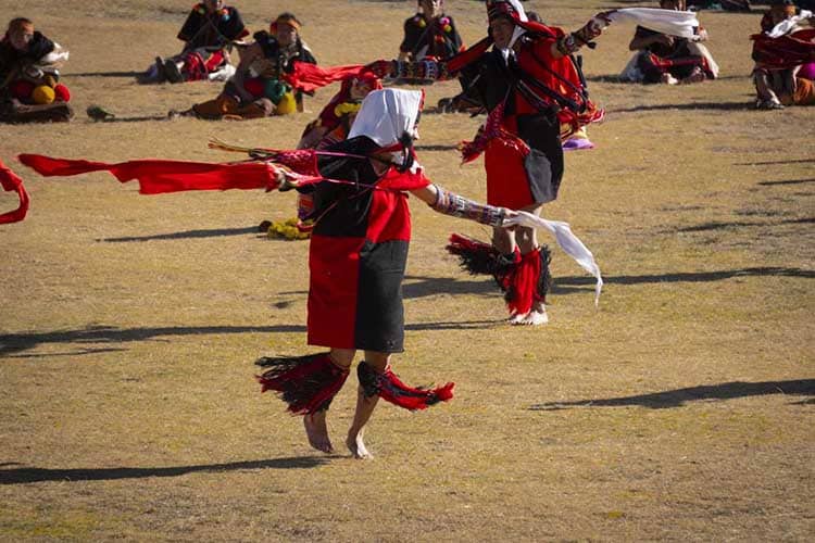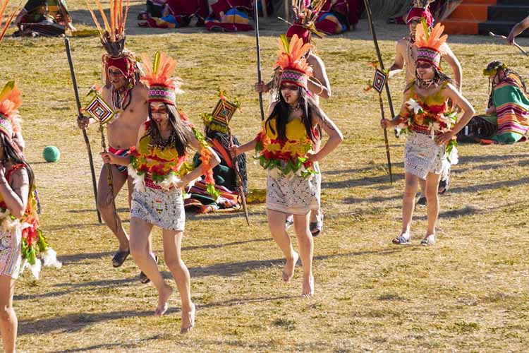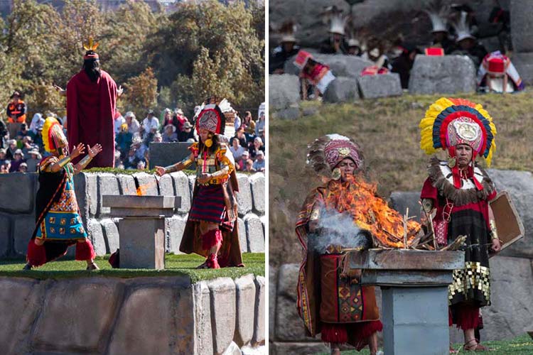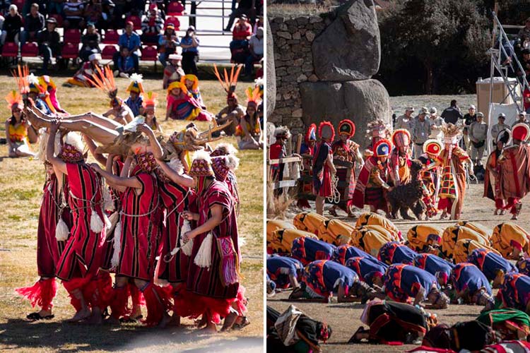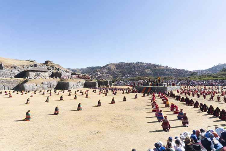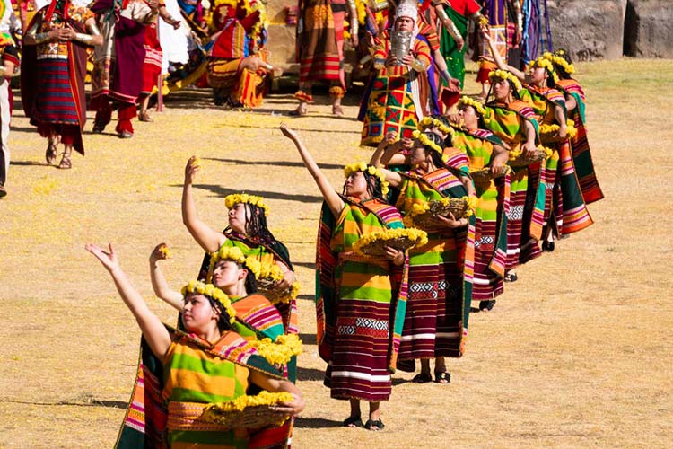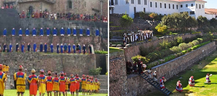 The dramatization begins at Qoricancha, the Temple of the Sun. As the sun’s first rays emerge, the Inca (the emperor of the Quechua people) announces the beginning of the festival as the armies from the four suyos (regions) of the Inca Empire, Collasuyo, Contisuyo, Antisuyo, and Chinchaysuyo, converge upon the temple grounds.