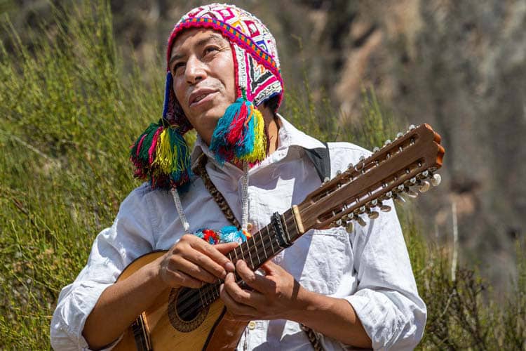 Many Huayno song lyrics combine Quechua and Spanish, providing an excellent opportunity to work on your language chops during your private Peru holiday. One of the emblematic songs that combines both languages is entitled “Adios Pueblo de Ayacucho,” (Goodbye, Town of Ayacucho). This song narrates the tale of a priest who falls in love with a high-class woman from Huamanga, and once the love affair is discovered, he is banished from his town. The lyrics reflect the two-fold heartbreak of the priest, who loses not only his home, but his beloved as well. Other well-known songs in this genre are “Ojos Azules,” “Valicha,” and “Vienes y Te Vas” by Cusqueñan artist William Luna.