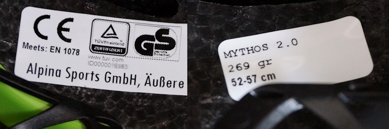 Grün, weiß, schwarz, sehr leicht, sehr bequem und vor allem sehr gut im Testergebnis. Ok, zugegeben, das ist ein wenig zu knapp erklärt. Der Mythos L.E. von Alpina ist mit seinen 269 Gramm sehr leicht auf dem Kopf zu tragen. Natürlich ist der Helm GS geprüft und auch vom TÜV Reinland zertifiziert. Ein CE Zeichen weist der Fahrradhelm Alpina Mythos 2 auch auf. Mein Helm ist für die Kopfgröße 52 bis 57 cm Kopfumfang geeignet.