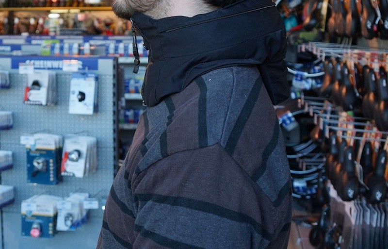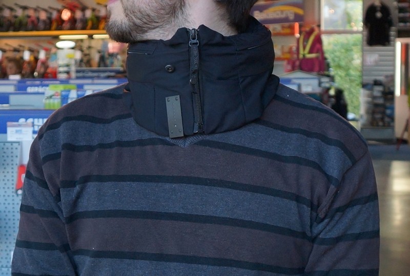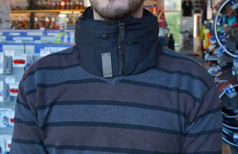 Er sieht aus wie ein Schal und fällt auch nicht viel mehr auf. Er wird um den Hals gelegt und funktioniert wie eine art Halskrause. Der Unterschied zur Halskrause ist jedoch, beim unsichtbaren Fahrradhelm, dem Hövding Airbag Helm hat man noch ordentlich Bewegungsfreiheit. Die normalen Nackenbewegungen die man beim Fahrradfahren macht, sind nicht beeinträchtigt. Hier kommt es aber ganz auf die richtige Fahrradhelm Größe an. Ich hatte bei dem Test einmal ein Modell in der Größe S und M an. Das S Modell war recht eng, hiermit konnte ich mich nicht frei bewegen.