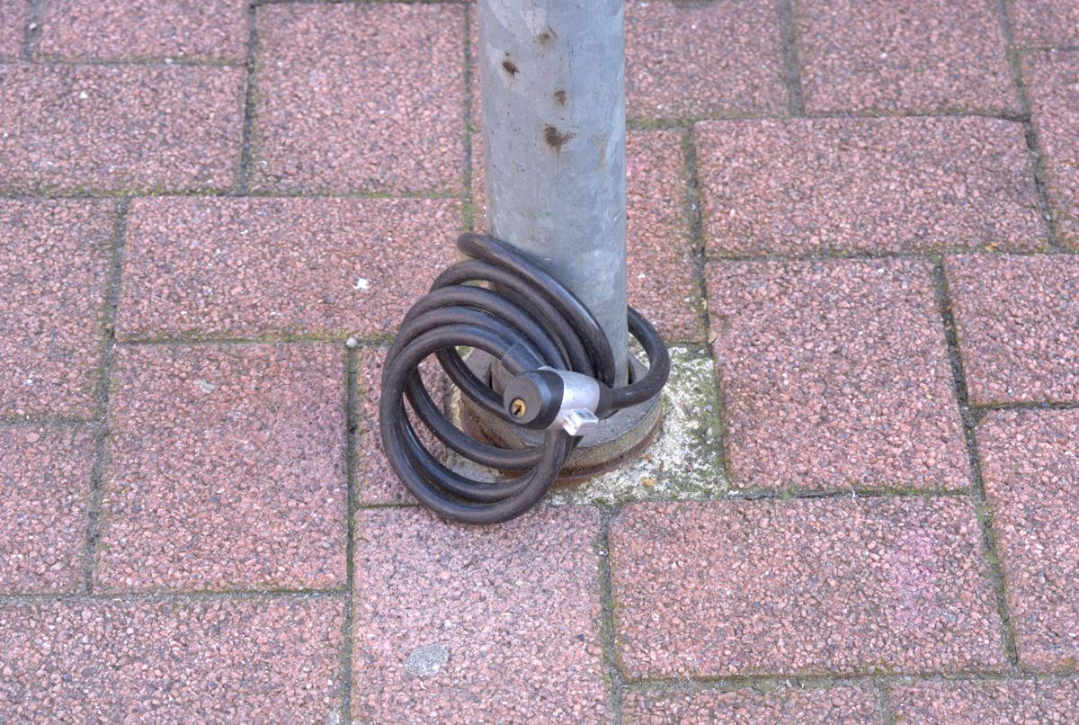 Ebenfalls auffällig war die Absicherung der Fahrräder, nicht selten wurden die Fahrräder mit mehr als einem Fahrradschloss gesichert. Wer nur ein Fahrradschloss nutzt, der sollte, wie auf dem Bild, nicht vergessen, das Fahrrad mit abzuschließen und nicht nur das Straßenschild vor Diebstahl schützen 😉