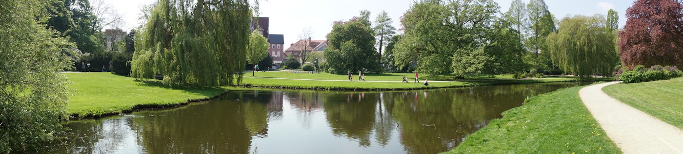 Unser erstes Ziel sollten die Plätze und Straßen der Stadtführung sein, die wir noch einmal mit dem Fahrrad abfahren wollten. Der Weg führte uns durch den Schlosspark zum Französischen Garten und schließlich bis zum Stadtpark. Angefangen hat unsere Tour gegenüber dem Fahrradverleih Jacobi mit der Durchquerung der Trifft-Anlage.