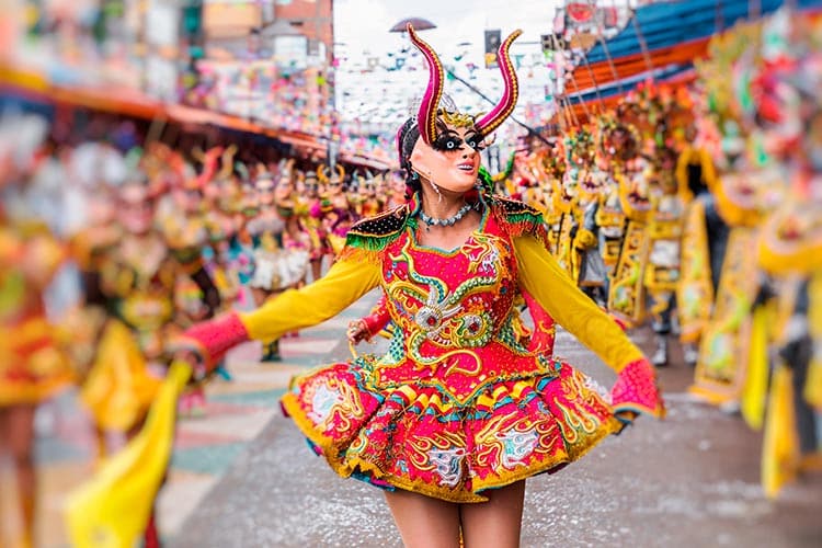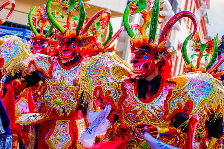 February 2nd is the main day of the Candelaria celebration, which includes masses, dances, and a procession of the Virgen de la Candelaria, accompanied by the faithful, dancers, and the music of the sikuri, the specific style of panpipe and music that you will find in the altiplano. During this festival there are hundreds of musicians and dancers showing their folkloric dances and impressively colored outfits.